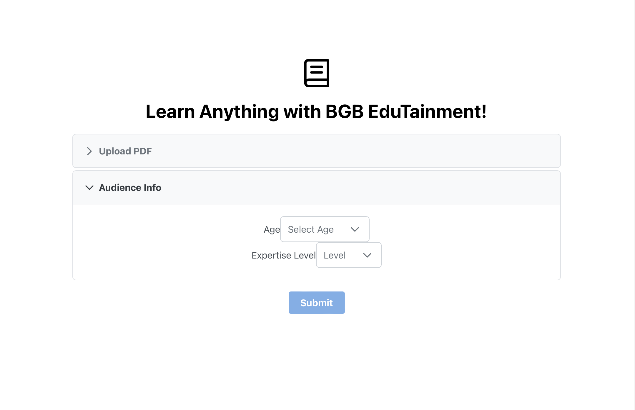 Auto-generate 10+ tailored lesson plans with questions, audio, and soon video from a PDF file.